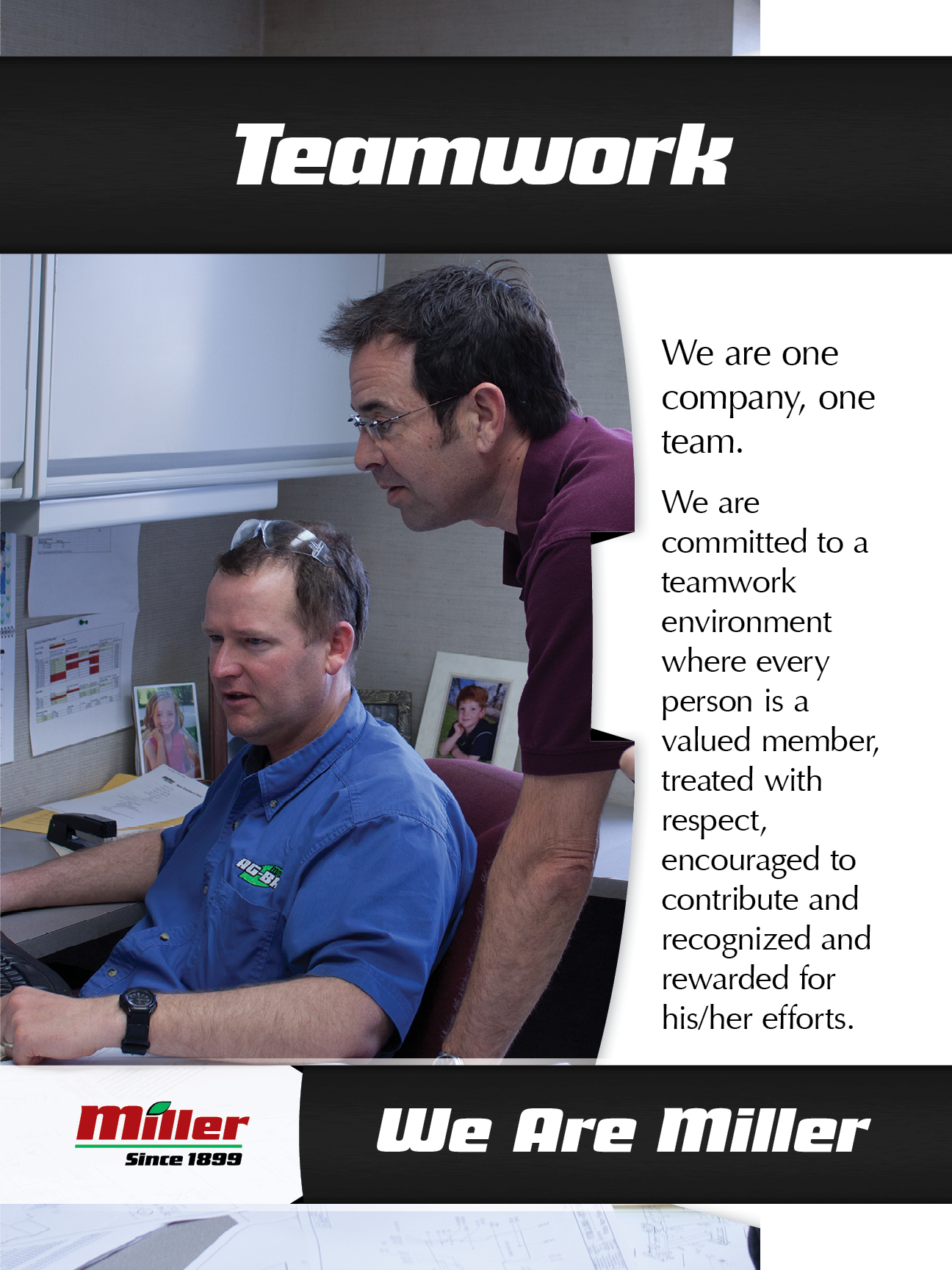 • Teamwork- -We are one company, one team. We are committed to a teamwork environment where every person is a valued member, treated with respect, encouraged to contribute and recognized and rewarded for his/her efforts.