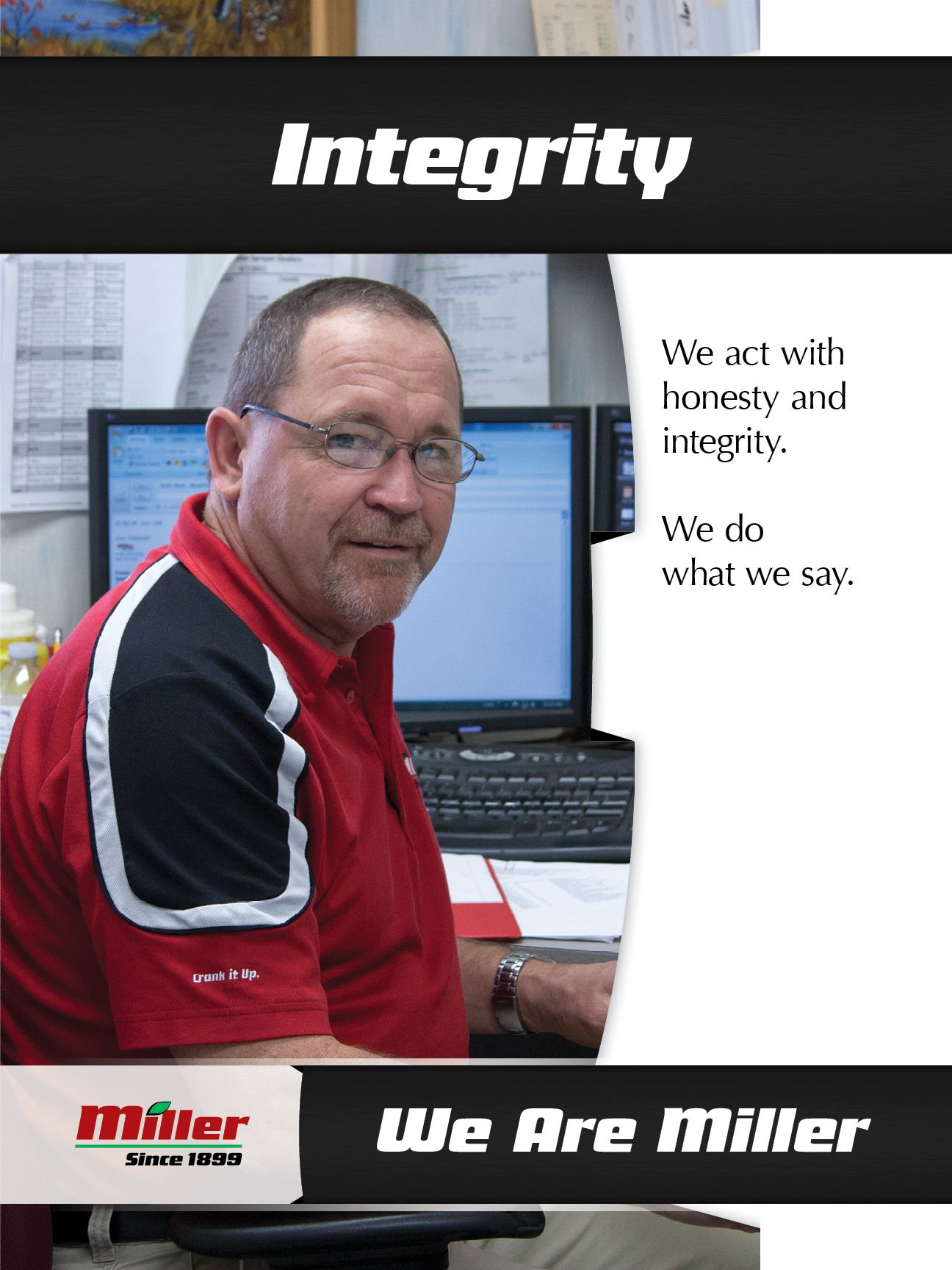 • Integrity- -We act with honesty and integrity. We do what we say.