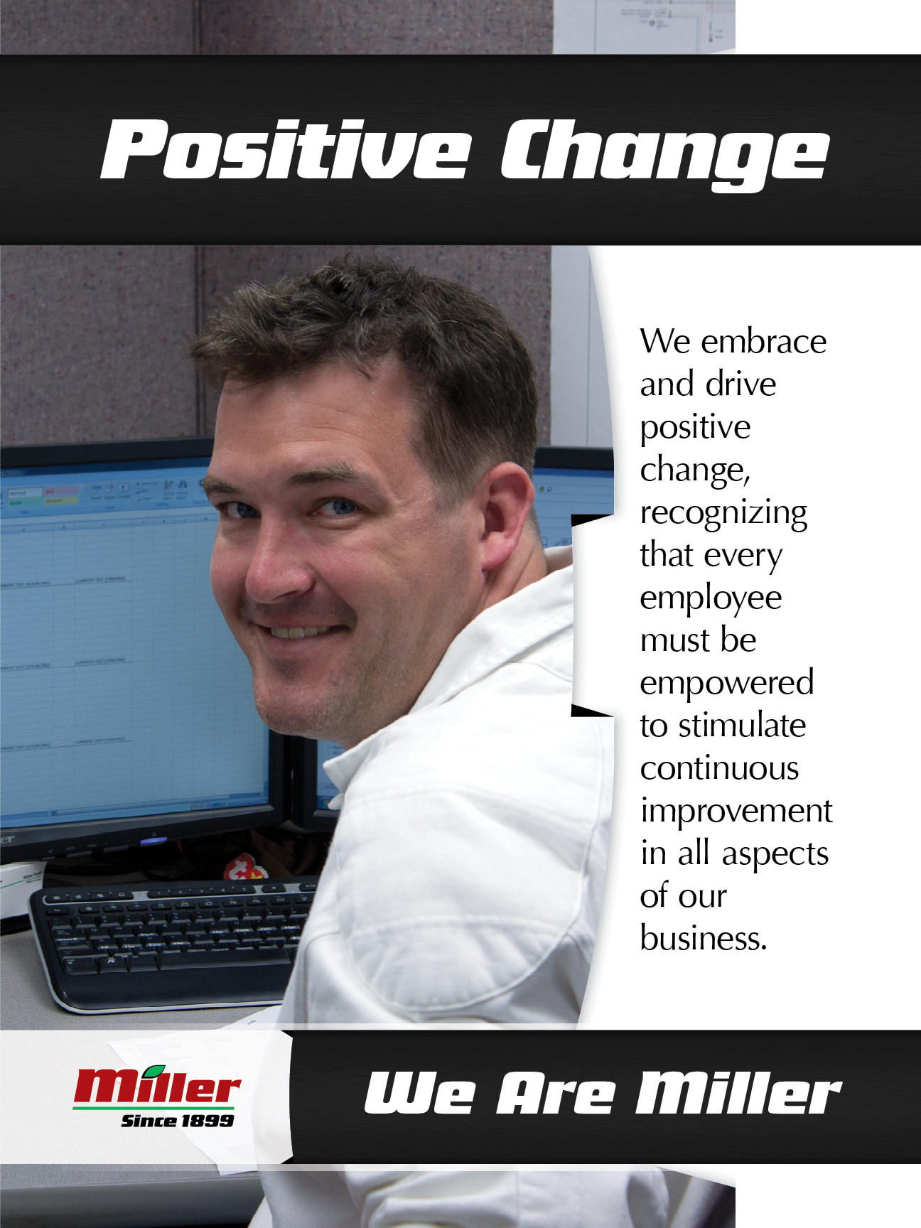 • Positive Change- -We embrace and drive positive change, recognizing that every employee must be empowered to stimulate continuous improvement in all aspects of our business.