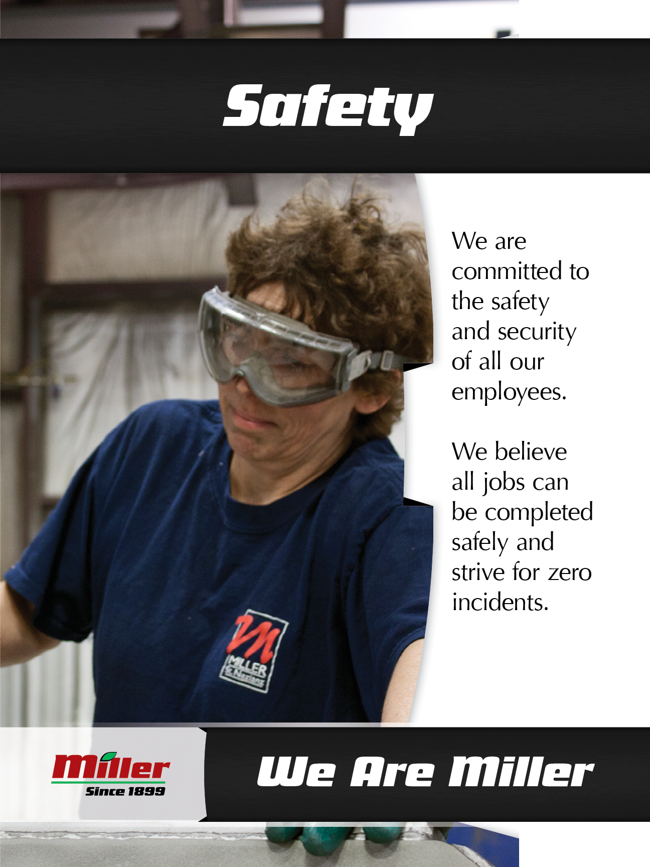• Safety- - We are committed to the safety and security of all our employees. We believe all jobs can be completed safely and strive for zero incidents.